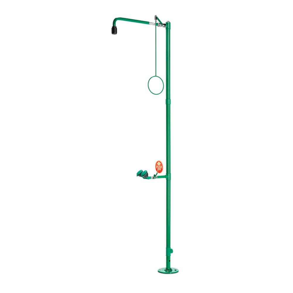 - La doccia di emergenza per il corpo con doccia oculare integrata è una combinazione di doccia di emergenza indipendente per il montaggio a pavimento. Il tubo verticale e i componenti che convogliano l'acqua sono realizzati in acciaio inossidabile e sono rivestiti con vernice a polvere verde resistente agli agenti chimici. Il soffione ad alte prestazioni e la doccia oculare sono dotati di regolatori di flusso automatici integrati per un getto conforme alle norme. La doccia oculare è dotata di soffioni a getto ampio, coperchi antipolvere con meccanismo a ribalta e una vaschetta di raccolta. La combinazione è certificata DIN-DVGW e soddisfa le norme nazionali e internazionali pertinenti.